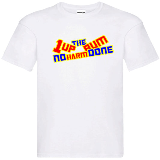 "1Up The Bum No Harm Done" T-Shirt – Unisex Tee in Black and White