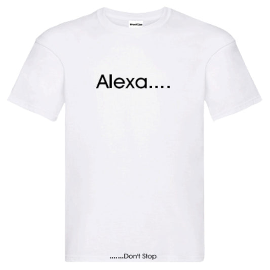 "Alexa Don't Stop" T-Shirt – Unisex Tee Available in Black and White