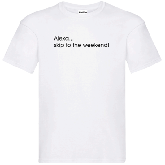 "Alexa Skip To The Weekend" T-Shirt – Unisex Tee Available in Black and White