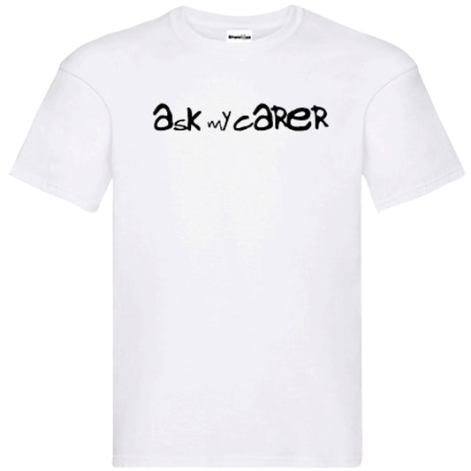 "Ask My Carer" T-Shirt – Unisex Tee in Black and White